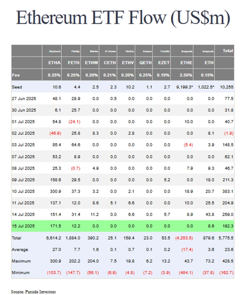 - イーサリアム(ETH)現物ETFに1億9230万ドルの資金純流入があったと報じられました。
