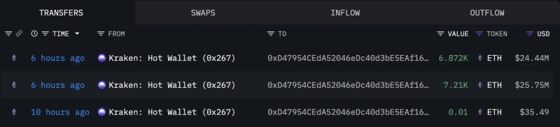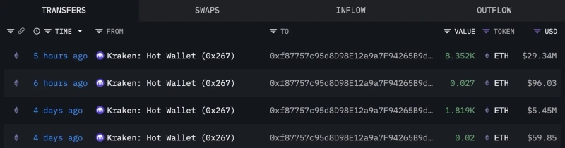 新たに生成された2つのウォレットが仮想資産(暗号資産)取引所クラーケンから大量のイーサリアム(ETH)を出金したことが明らかになりました。