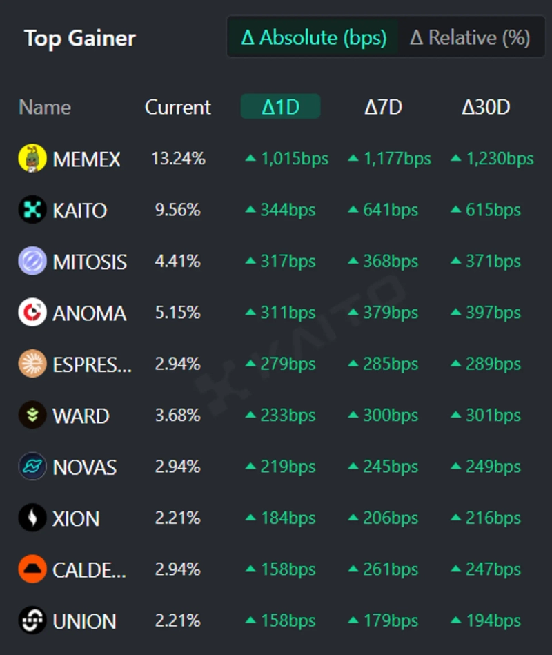 [本日のグローバル注目コイン] MemeX・Kaito・Mitosis 他