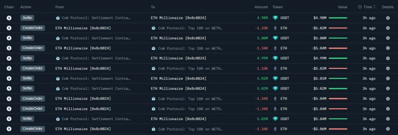 - あるイーサリアム(ETH)のクジラが、2週間保有していた8005ETHを売却し、約985万ドルの利益を得たと伝えられました。