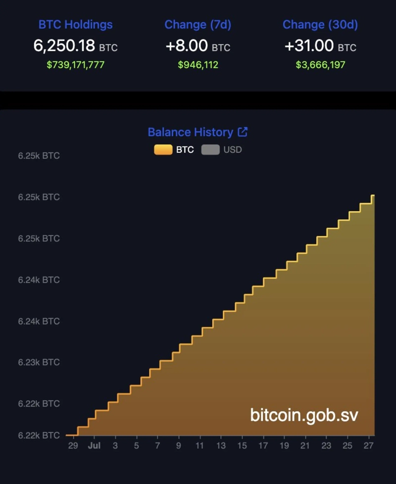 エルサルバドルのビットコイン(BTC)保有量が6,250BTCを突破しました。