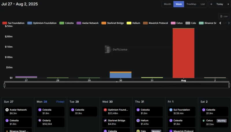 - 最大規模のアンロックは、Sui財団が1日に約2億3940万ドル規模で実施すると発表されました。