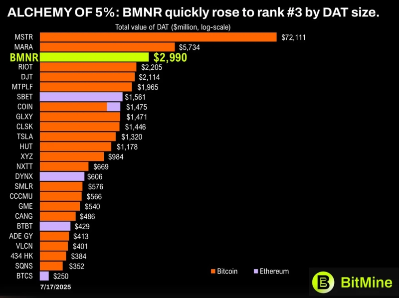 さらに、トムは自身が取締役会に所属するイーサリアム保有企業、ビットマイン・イマージョン・テクノロジーズについて言及した。彼は「ビットマインは現在833,133イーサリアムを保有しており、その価値は30億ドルに上る」とし、「これは世界最大のイーサリアム財務であり、世界で3番目に大きい仮想資産(暗号通貨)財務だ」と伝えた。