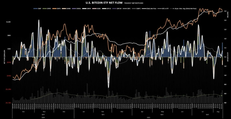 この日のトレーダーTのデータによると、資金流入を牽引した商品はブラックロックの「IBIT」で、5億2334万ドルが純流入となりました。グレースケールの「BTC」も732万ドルの流入を示しました。一方、フィデリティ「FBTC」は1億1347万ドル、アーク・インベスト「ARKB」は1億4992万ドル、ビットワイズ「BITB」は3087万ドル規模の純流出を記録しました。ヴァンエック「HODL」も585万ドルが流出しました。
