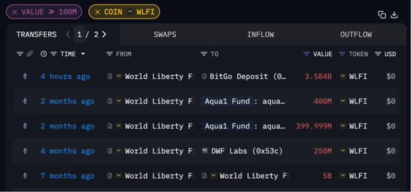 - ワールド・リバティ・ファイナンシャルがビットゴーに3580億枚のWLFIトークンを入金したことが判明しました。