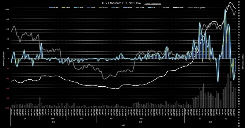 米国のイーサリアム(ETH)上場投資信託(ETF)は前日、2億ドルを超える資金純流出を記録しました。