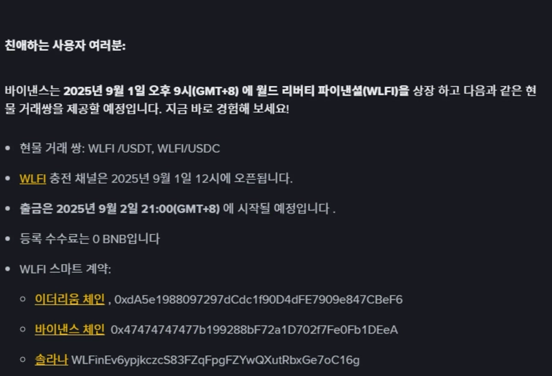 1日(韓国時間) バイナンスが本日22時にワールドリバティファイナンシャル(WLFI)を上場すると発表した。