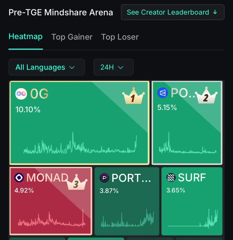 4位はカイトのヤッパープログラムに掲載されたサーフが占めた。特にエアドロップの予定が近づくにつれて投資家のオンライン上での言及が増えた。