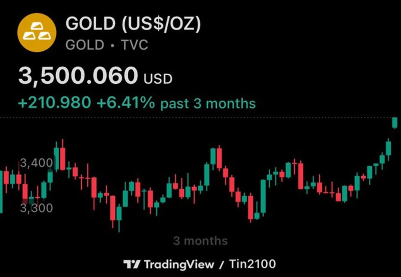2日(韓国時間)トレーディングビューによると、金価格は前日比1.88%上昇したオンス当たり3500ドルを記録している。