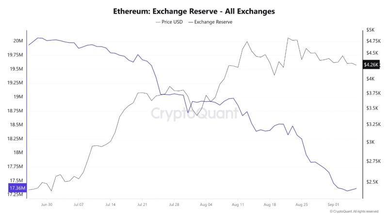 最近2か月の間、主要取引所のイーサリアム(ETH)保有量が急減したことがわかった。