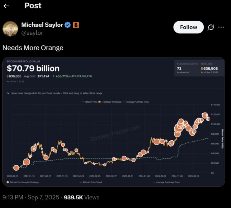 セイラーCEOはストラテジーがビットコインを追加購入したときに当該チャートを掲載する習慣がある。