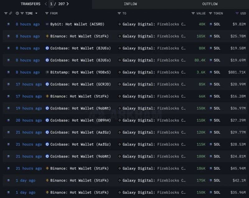 過去5日間でギャラクシー・デジタルが購入したソラナは合計650万個(約15億5000万ドル)と集計されている。
