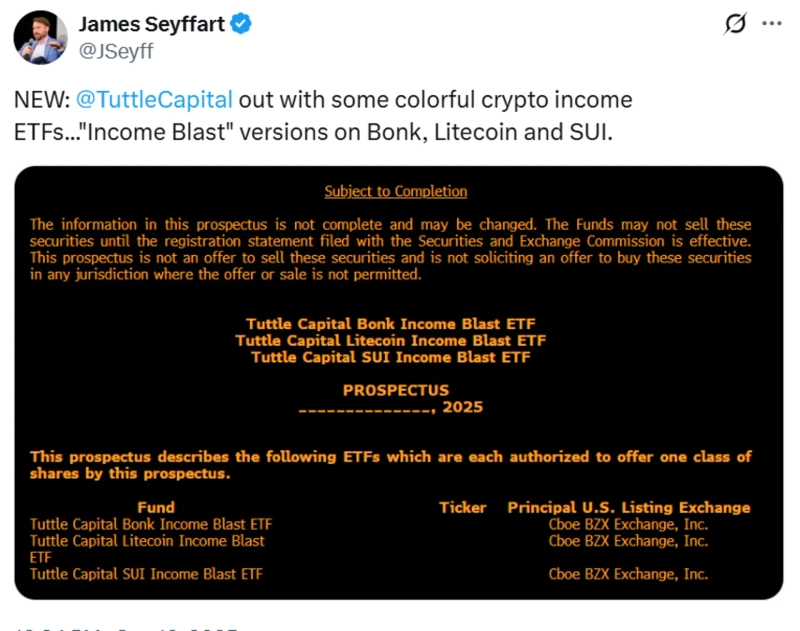 - 該当ETFは ミームコイン BONK(BONK), ライトコイン(LTC), スイ(SUI) を基礎資産として構成されていると述べた。