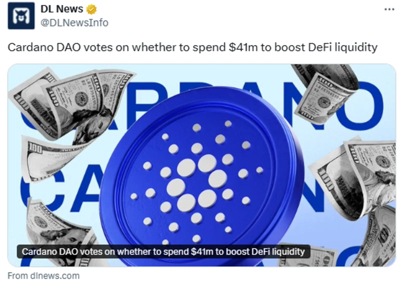 - カルダノ(ADA) DAOがDeFiの流動性拡大のため4100万ドルを投入する案件に関する投票を開始したと伝えた。