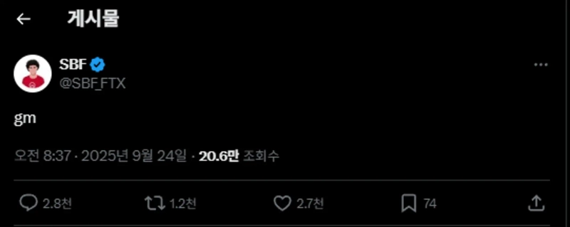 23日(現地時間)、SBFはgm(good morning)という投稿をした。該当の投稿がされた後、SBFの復帰に関する様々な噂が広まり、投稿後にFTXの取引所トークンであるFTTの価格も急騰している。