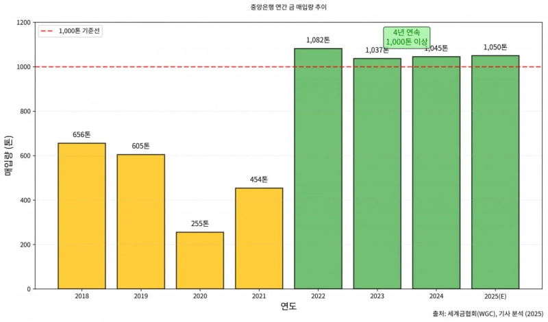金は中央銀行の公式外貨準備通貨には含まれない。しかし中央銀行は金保有を拡大している。米国のシンクタンク、アトランティック・カウンシルによれば金は世界の中央銀行の公式準備資産の約15%を占めると推定される。世界金委員会(WGC)の資料によれば世界の中央銀行は2022年~2025年の4年間連続で年1000トン以上の金を購入する見込みだ。2010年代の年平均購入量の2倍以上の速度である。