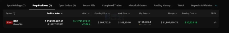 - このクジラはビットコイン(BTC)の下落ベットを通じて約180万ドル(約25億7,000万ウォン)の利益を得ていると明らかにした。