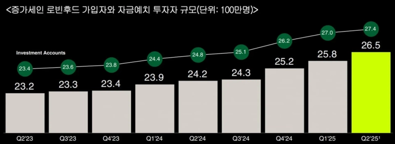 ロビンフッドに資金を預ける投資家数は2023年第2四半期の2320万人から先の第2四半期で2650万人に増加した。同期間にロビンフッドを通じて運用される資産規模は890億ドルから2790億ドルへと3倍以上に増えた。